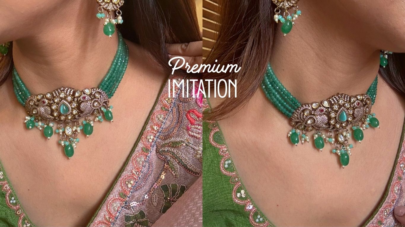 NL25A118 Yogita Kundan AD Gold Polish Necklace In Green