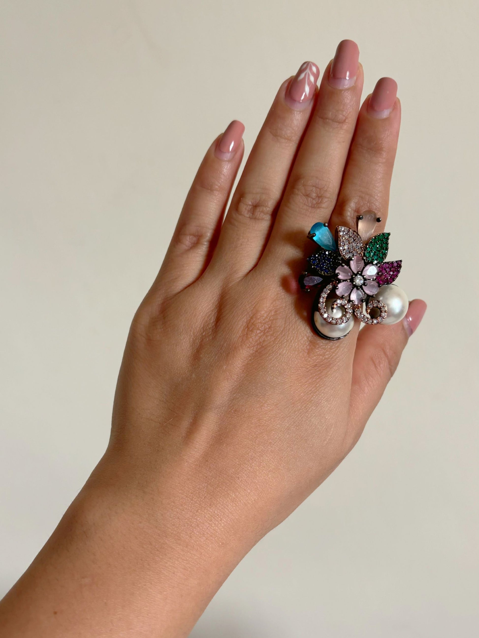 RG25A007 Adjustable Multicolored Nano Setting Stone AD Ring